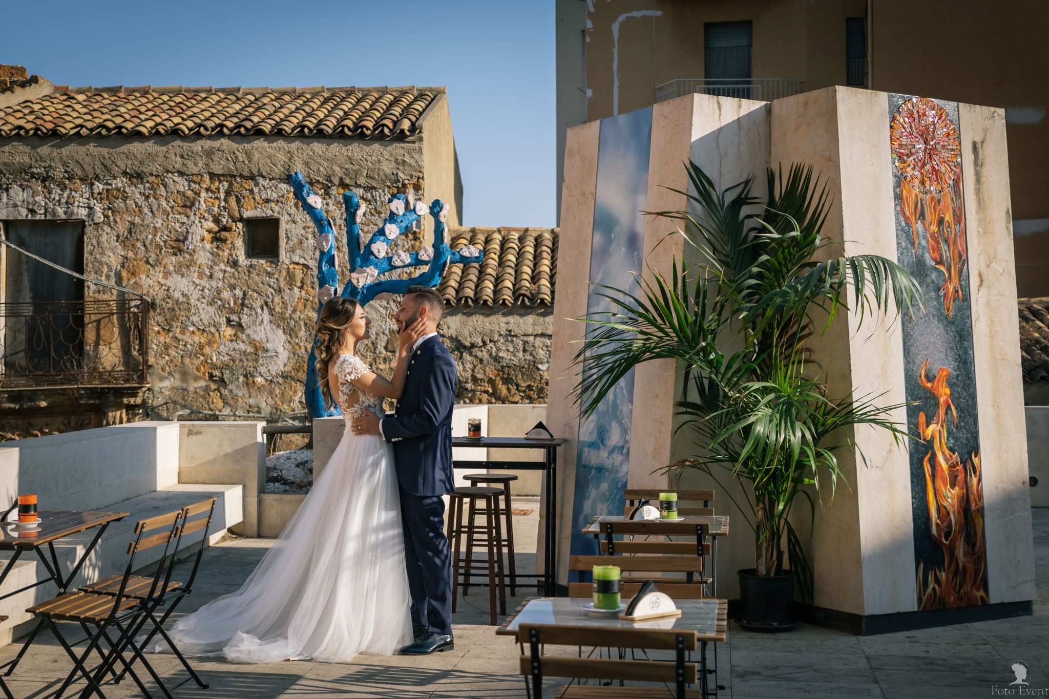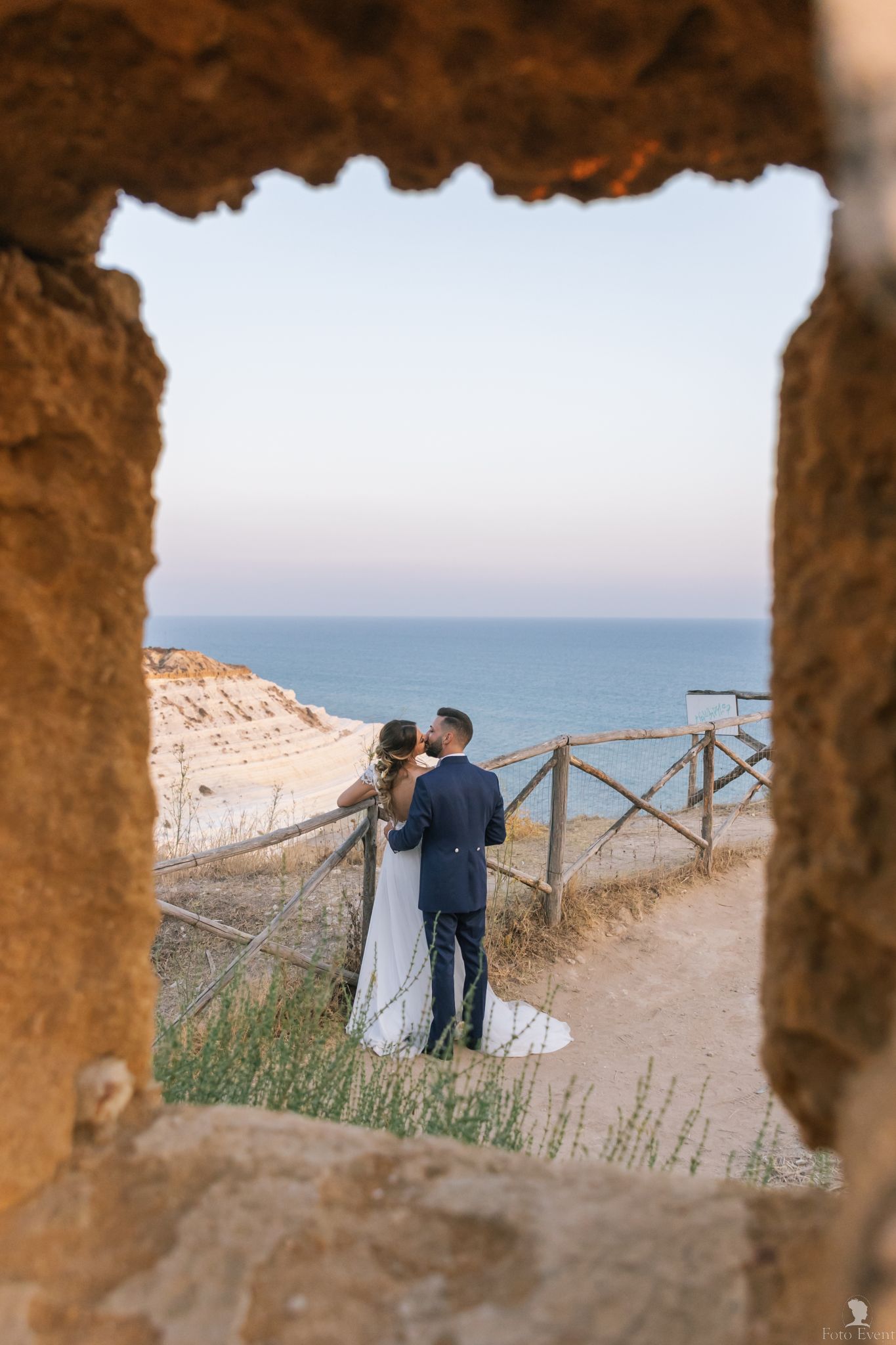 "Amidst the white cliffs of Scala dei Turchi, a Wedding at white wall the newlyweds stand in awe, as if in a magical dreamland where love and beauty know no bounds."