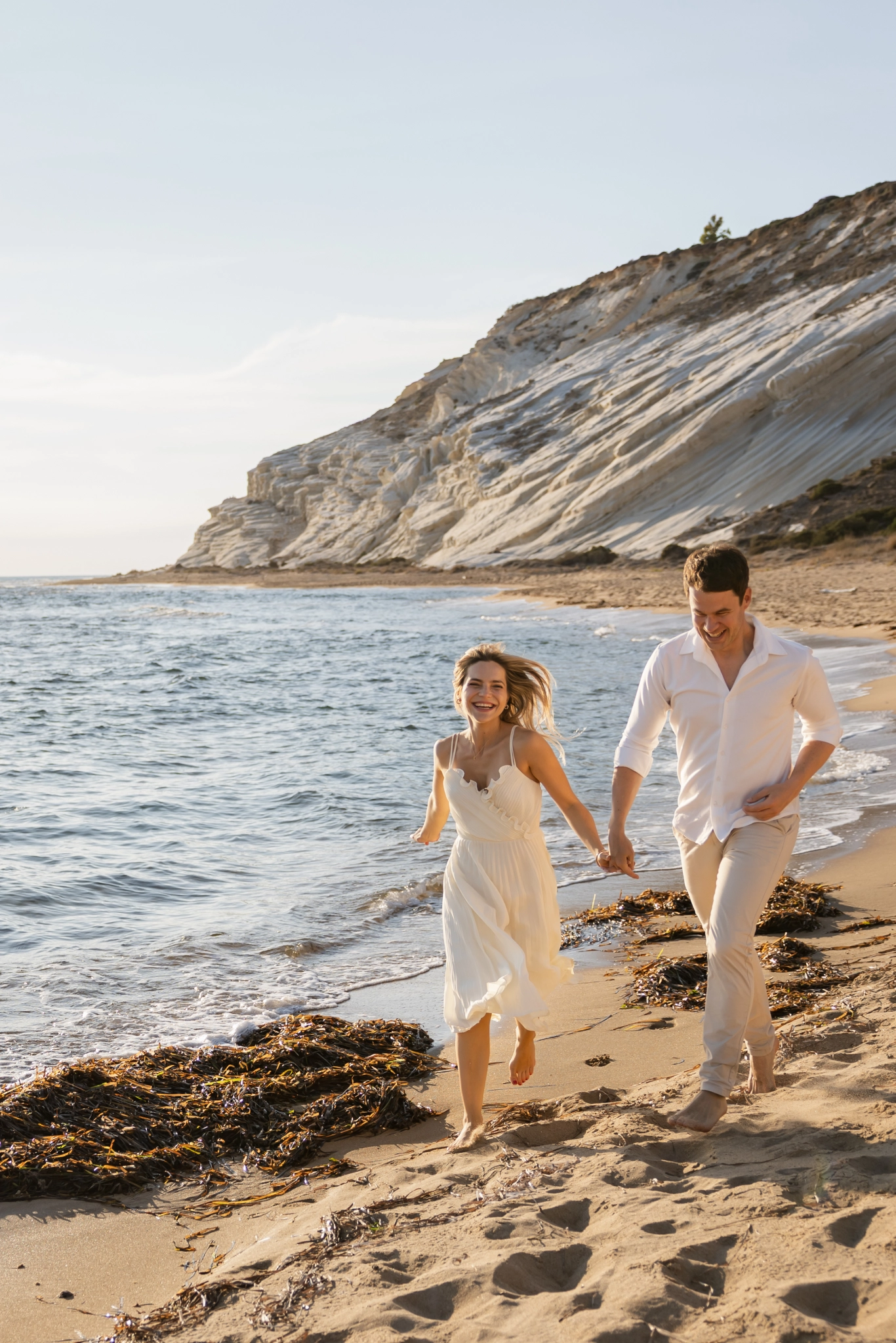 The couple met us in the late afternoon, when the light becomes golden and the beach is almost empty. We started walking together along the sandy path that leads to the cliffs. Around us, the landscape was pure poetry: sea breeze, untouched vegetation, the sound of waves, and a silence broken only by their laughter.