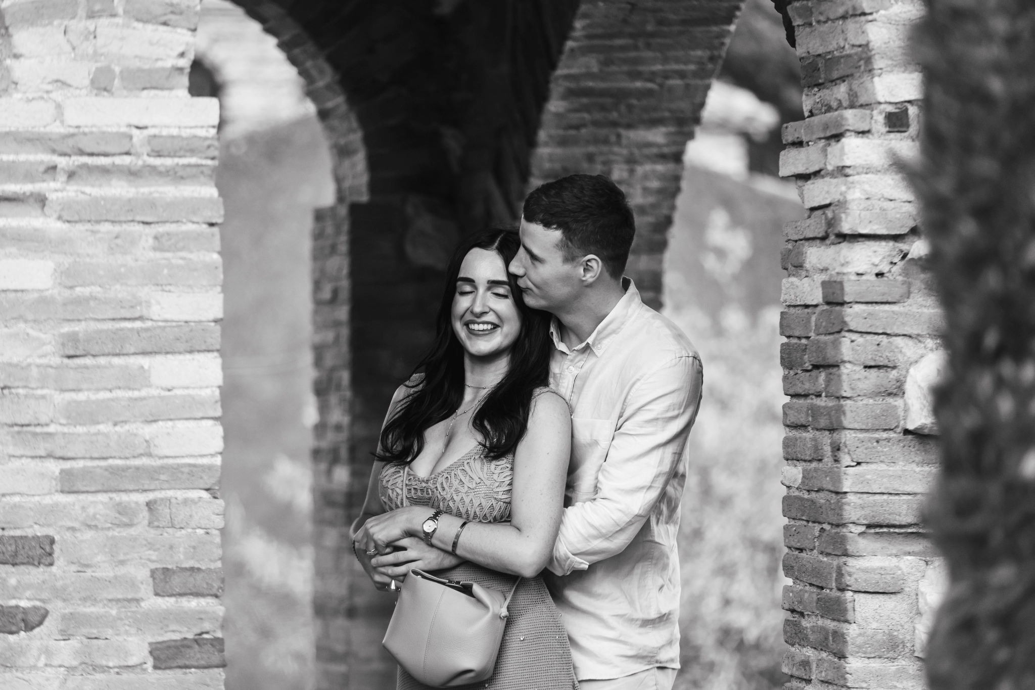 The belvedere gave us wide shots with the horizon, while the intimate pathways of the Villa allowed for close portraits. In 25 photographs, we told their story: from the surprise to the laughter, from the yes to the first kiss as fiancés.