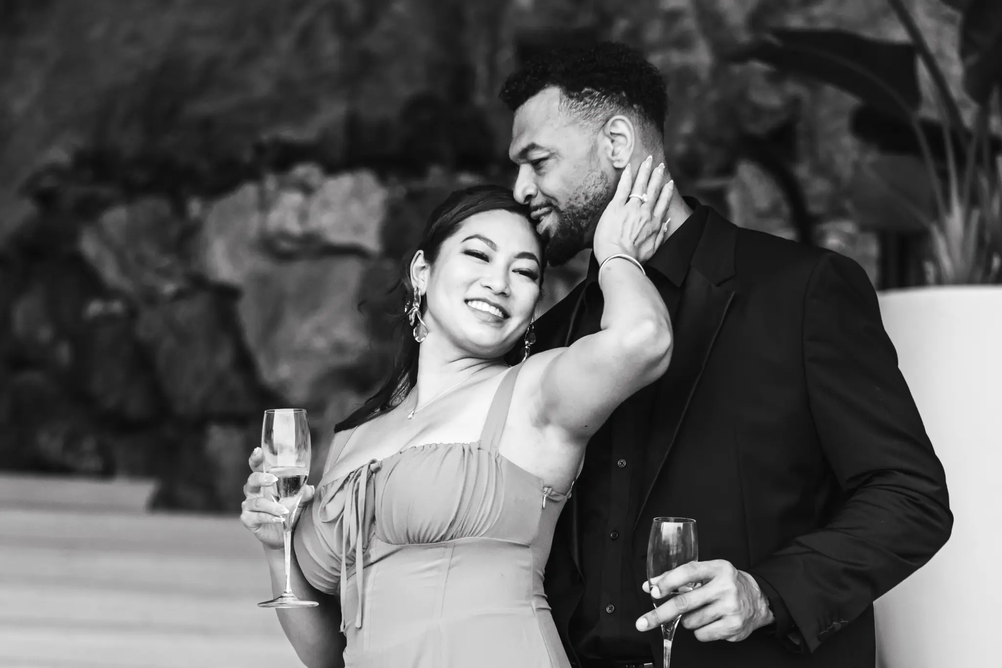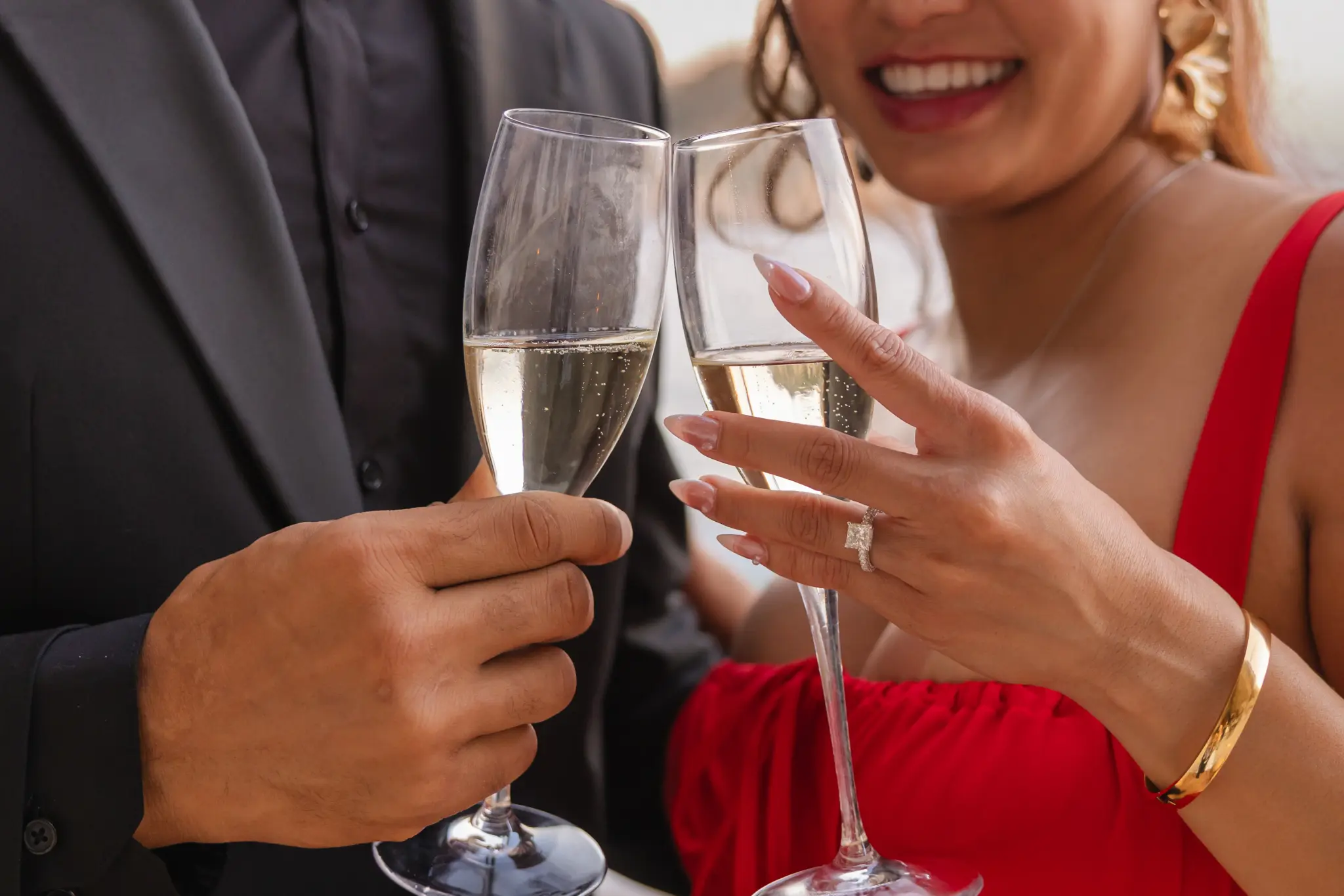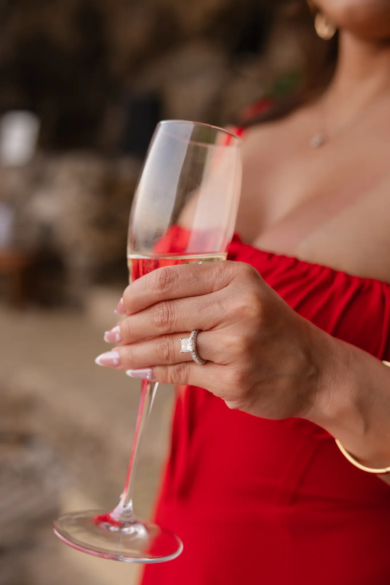 Dopo la risposta, i calici di champagne si sono sollevati, catturando gli ultimi raggi di sole. Le bollicine danzavano nel bicchiere, mentre la luce diventava più morbida e il mare si stendeva calmo davanti a loro.