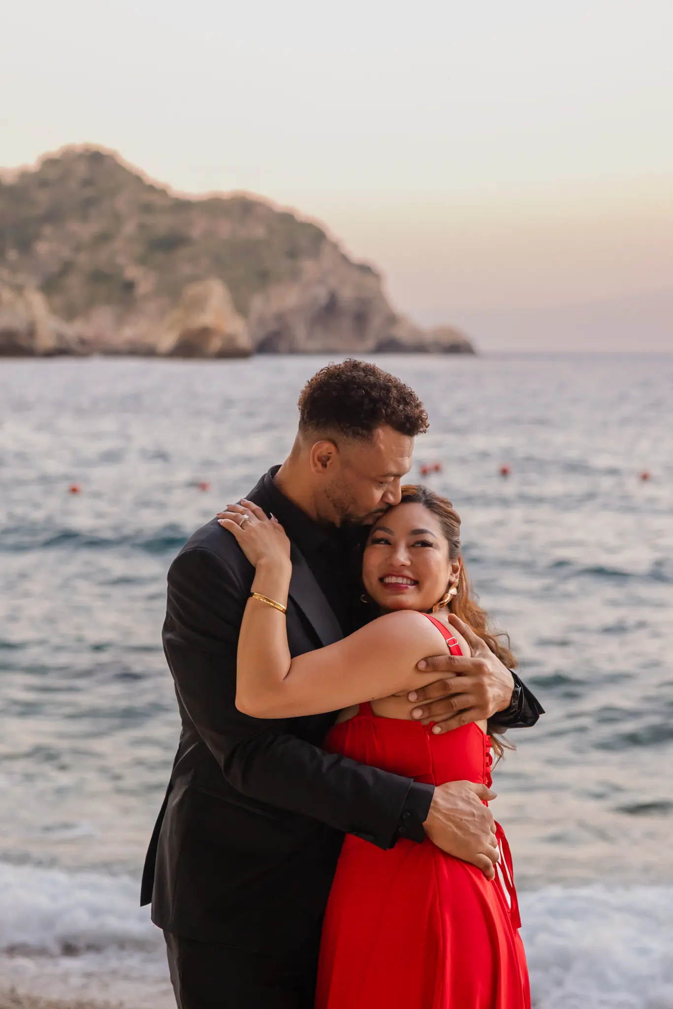Il sole stava calando, tingendo le scogliere di luce dorata. Judy, in un abito rosso che sembrava fatto apposta per lei, camminava a piedi nudi sulla sabbia. Michael la guidava verso la riva, con quello sguardo di chi sa che tra pochi secondi tutto cambierà.